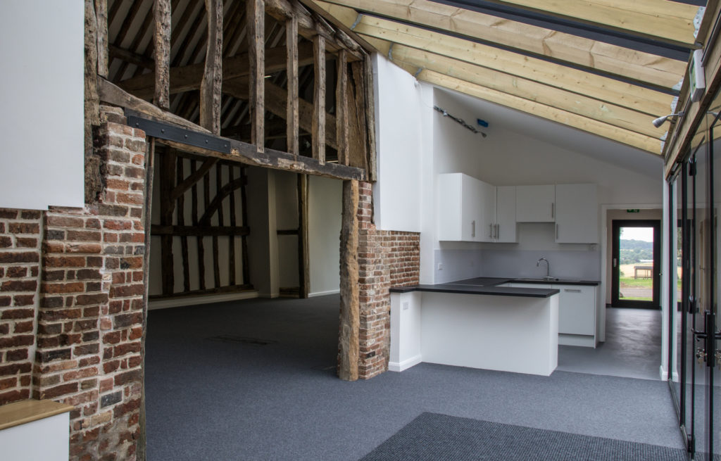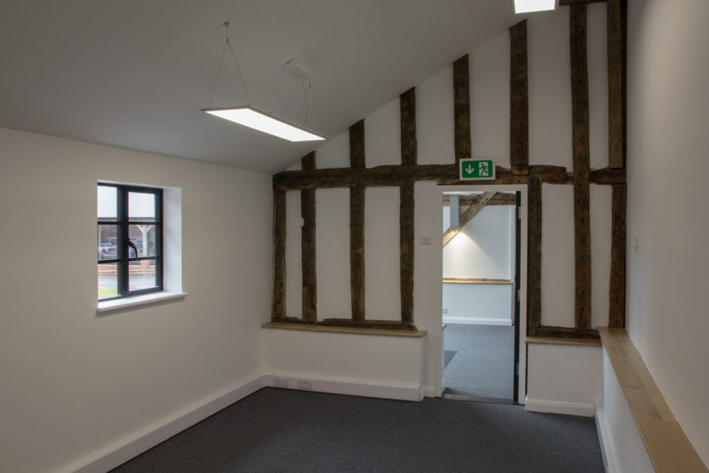 Whitworth were appointed to undertake the conversion of 2 redundant farm buildings to form new lettable office accommodation, The main barn is  a grade 2 listed timber frame barn and the smaller cart lodge was curtilage listed. To convert the 2 building required considerable renovation works, with both buildings requiring extensive repairs. The Cart Lodge was completed as phase 1.