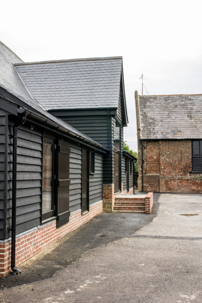 The larger Black Barn formed phase 2 and required extensive timber repairs. A number of these repairs were undertaken using oak and traditional methods however a series of re agricultural metal  strapping repairs were also undertaken, it was considered that these were in keeping with the nature of the barn and true to its heritage. Brick plinth repairs and repointing were also undertaken.