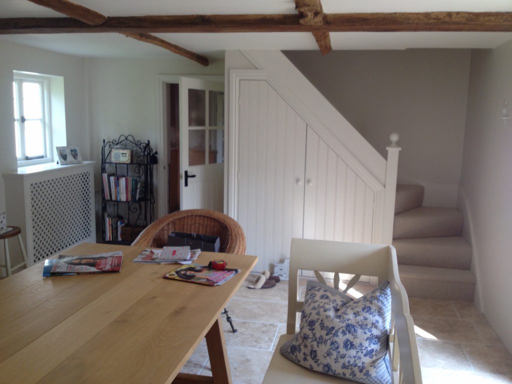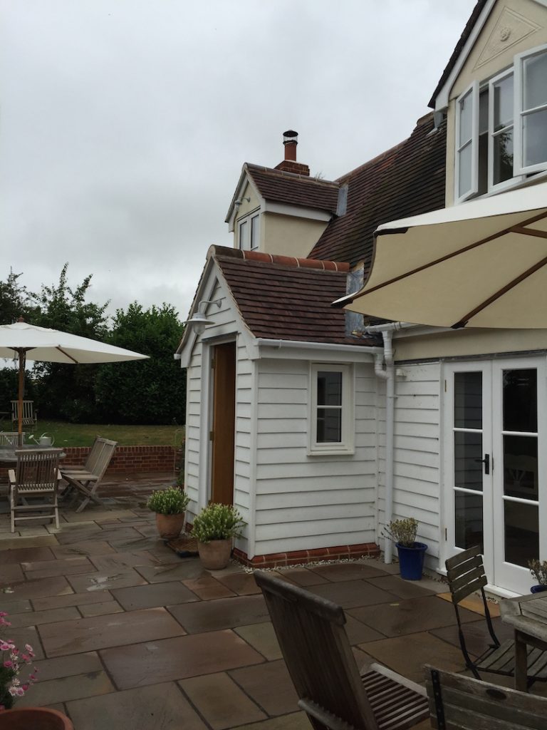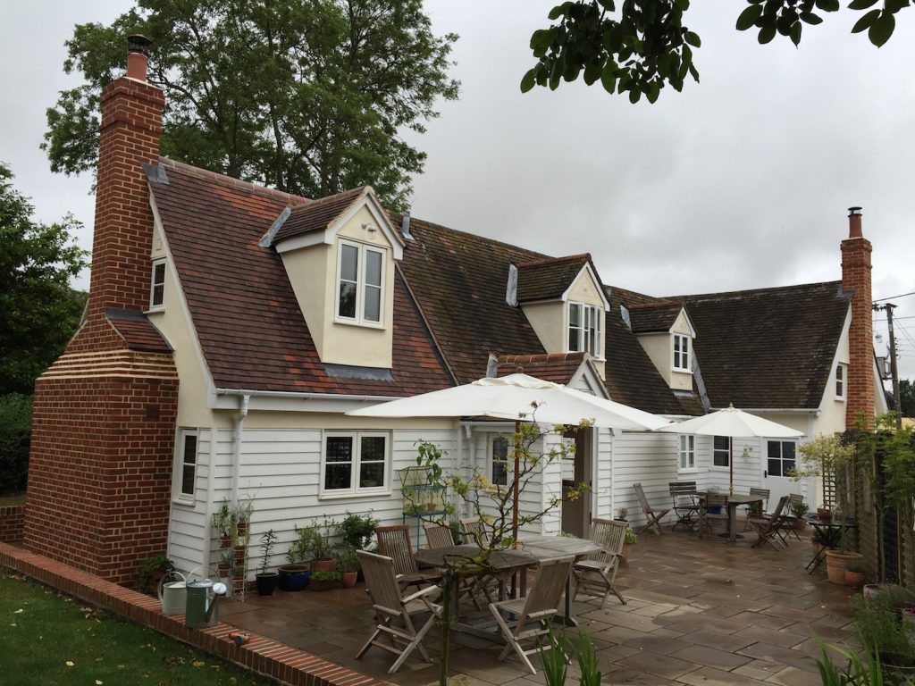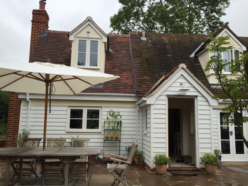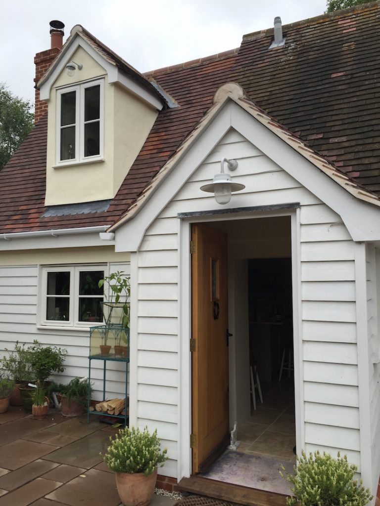 Extensive repairs were undertaken to the original cottage , including reconstruction of a severely decayed chimney and timber timber frame repairs. this work included incorporating breathable multi foil insulation over the timber frame before re-cladding with weatherboarding. Areas of cement render were renewed with lime render to help prevent further decay of the timber frame.